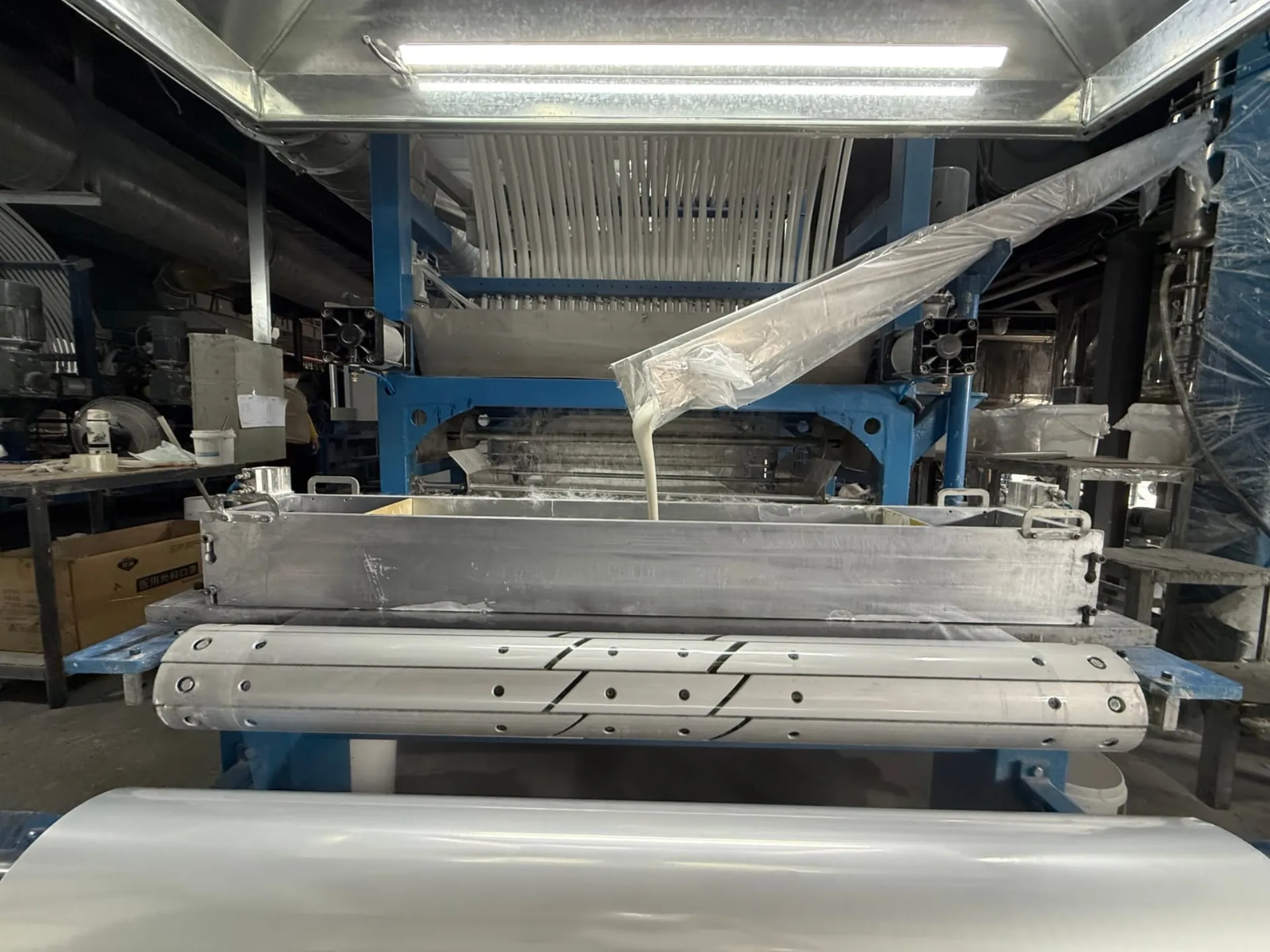 高强度PE薄膜自动平铺,为后续树脂涂覆提供稳定载体